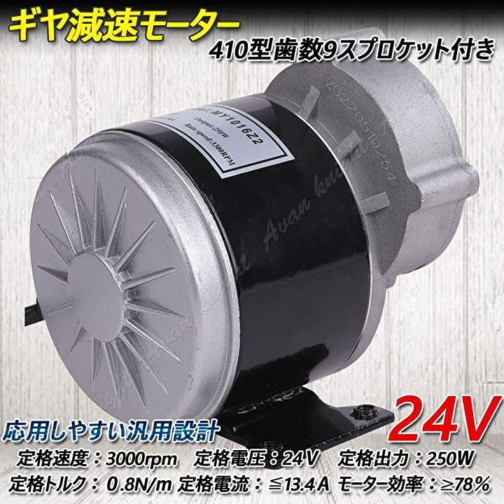 ・商品情報:ギヤ減速モーター(ギヤモーター、ギアードモーター) 410型歯数9スプロケット付 定格速度:3000rpm 定格電圧:24V(ボルト) 定格出力:250W(ワット) 定格トルク:0.8N/m 定格電流:≦13.4A モーター効率:≥78% 減速比:9.78:1