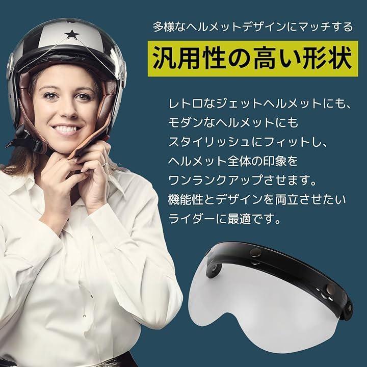 レトロなジェットヘルメットにも、モダンなヘルメットにもスタイリッシュにフィットし、ヘルメット全体の印象をワンランクアップさせます。