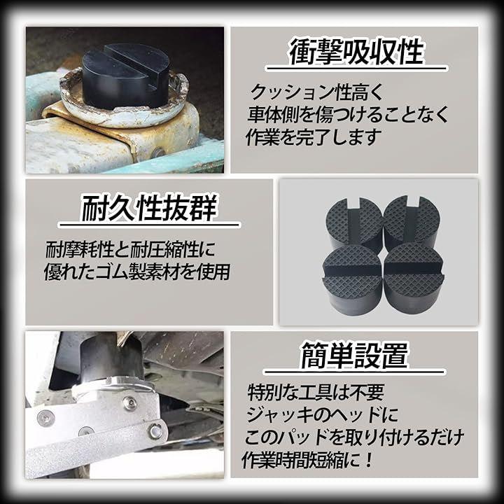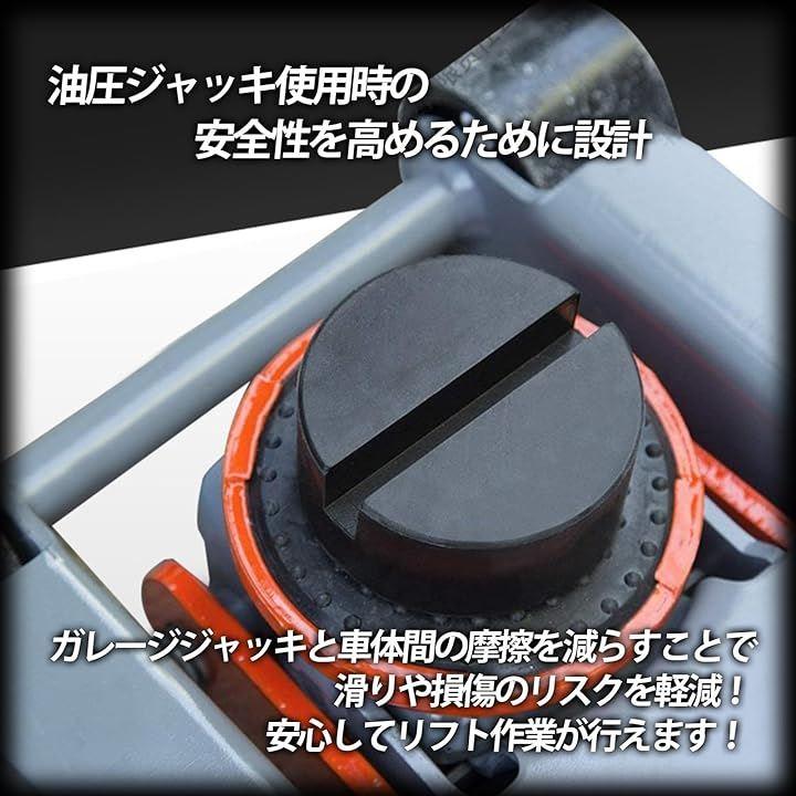 「安全性向上」油圧ジャッキを使用する際の安全性を高めるために設計されたHTharrosラバージャックパッドは、車のフレームレールを保護し、ガレージジャッキと車体の間の摩擦を減らすことで、滑りや損傷のリスクを軽減します。