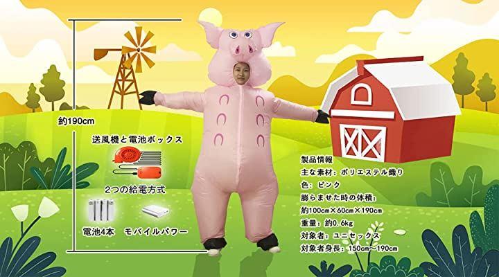 ・「セット内容」パッケージには着ぐるみ、ブロワー、バッテリーボックス (バッテリーは別売り)、 ピグレットキーホルダーそれぞれ1個が含まれており、ただ数分で可愛い豚の姿に変えられ、仮装の楽しみを思う存分に味わえます。