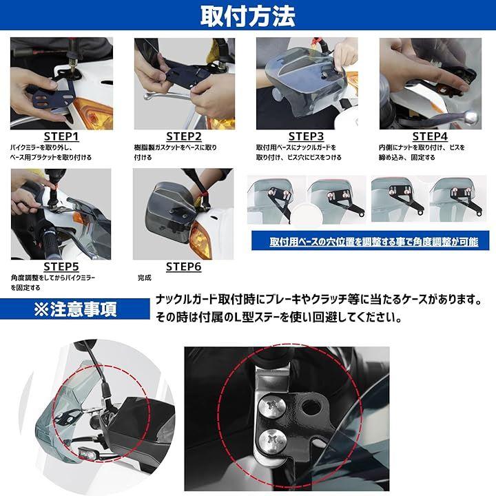 パッケージ内容:ナックルガードx2点(左右セット)、ネジx4個、固定プレートx2枚、プレートx2枚・材質:PVC(ポリ塩化ビニル)