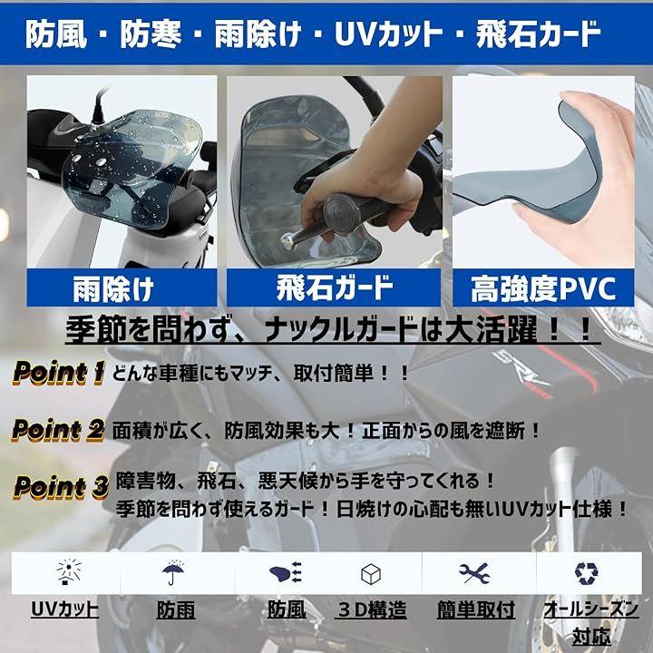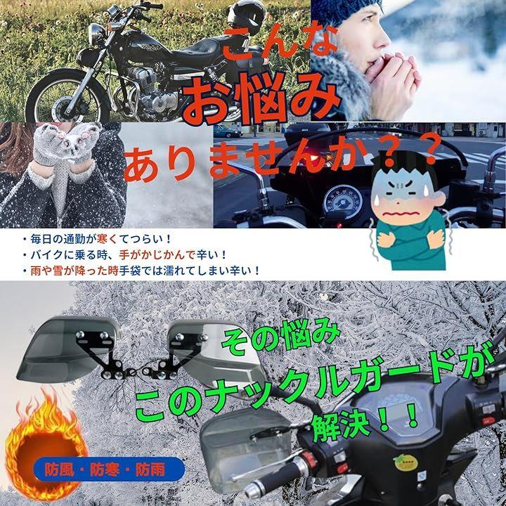 防風・防寒、冬の防寒対策:ナックルガードは表面積が大きく、防風効果に優れ、車体とのバランスも良く、ご使用いただけます。