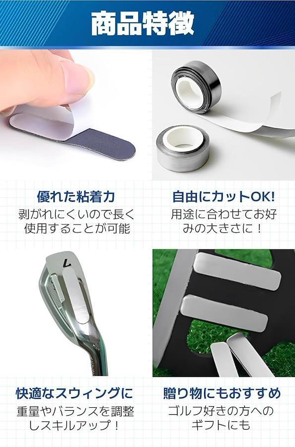 「商品特徴」(1)優れた粘着力:剥がれにくいので長く使用することが可能/(2)自由にカットOK.:用途に合わせてお好みの大きさに。/(3)快適なスウィングに:重量やバランスを調整しスキルアップ。/(4)贈り物にもおすすめ:ゴルフ好きの方へのギフトにも