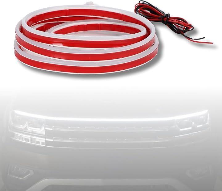 「視認性向上」このLEDテープライトは、車のフードに取り付けることで、夜間や悪天候時の視認性を大幅に向上させます。