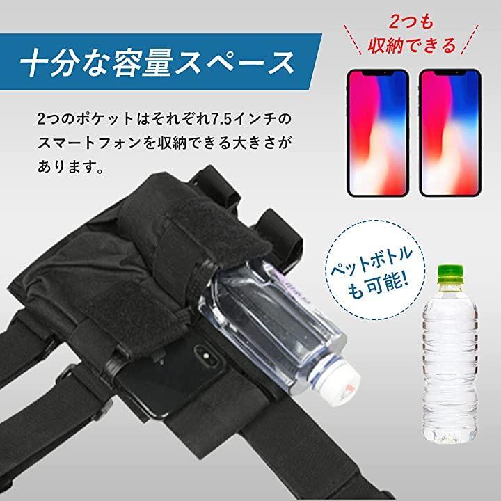 ・「十分な容量」レッグポーチ本体に付属する2つのポケットはそれぞれ7.5インチのスマートフォンを収納できる大きさがあります。