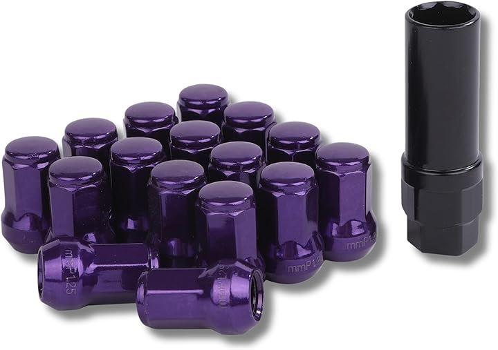 Compatible Lock Nuts Purple Car Tire Wheel Nuts M12 Short Nuts Lug Nuts Racing Nuts 16 Pieces 1.25mm