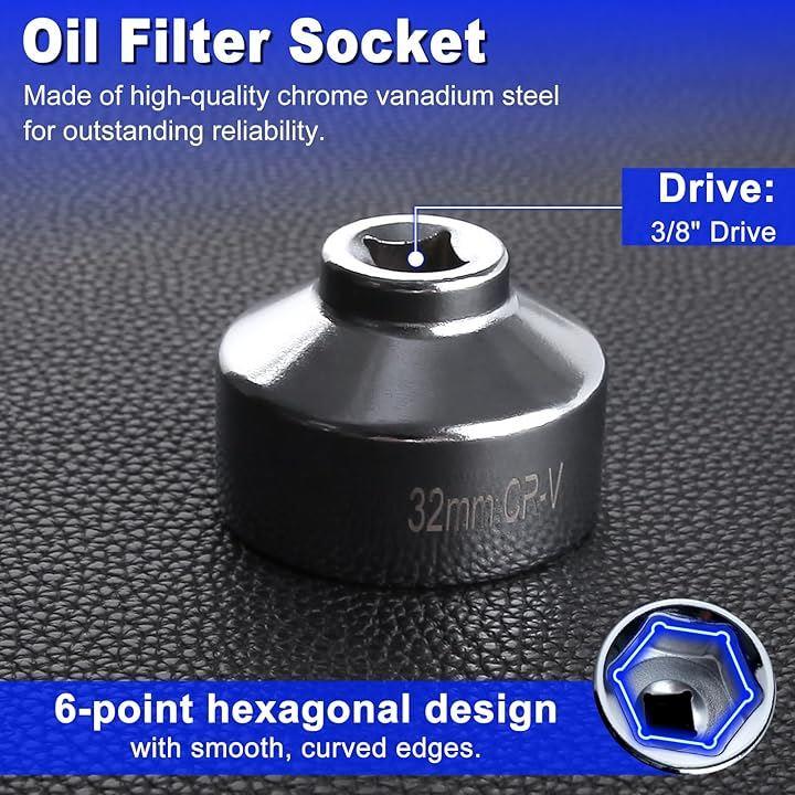 「使いやすい」オイルフィルターソケット工具をオイルフィルターの近位端に置き、反時計回りに力を加え、取り付けるときは逆方向に作業します。