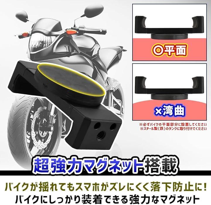 裏面には強力なマグネットが6個内蔵されており、バイクが傾いたり凸凹道を走行してもズレることなく安定感をキープします。