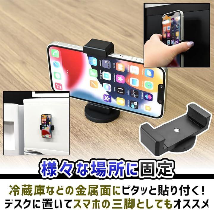 「セット内容」マグネット式スマホホルダーx1点 「サイズ(約)」76.8mmx30mm 「対応スマホ幅(約)」60mm~110mm 「カラー」ブラック 「材質」アルミニウム合金