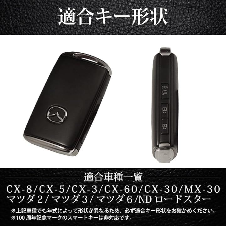 「適合車種」 マツダ 2、マツダ 3、マツダ6、ロードスター、CX-3、CX-30、MX-30、CX-5、CX-60、CX-8、CX-80 等、スマートキー形状が一致する商品であれば適応可能です。