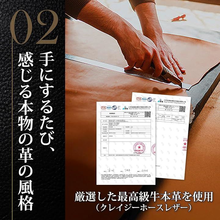 「厳選した高級牛革を採用」 クレイジーホースレザーを採用し、至極の手触りとぬくもりを手に入れることができます。