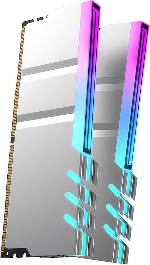 「特徴」上部がインフィニティーミラー構造となっており、LED発光しゲーミングPCをスタイリッシュに彩ります。アルミニウム素材の本体はメモリの冷却効果があり、性能アップに繋がります。