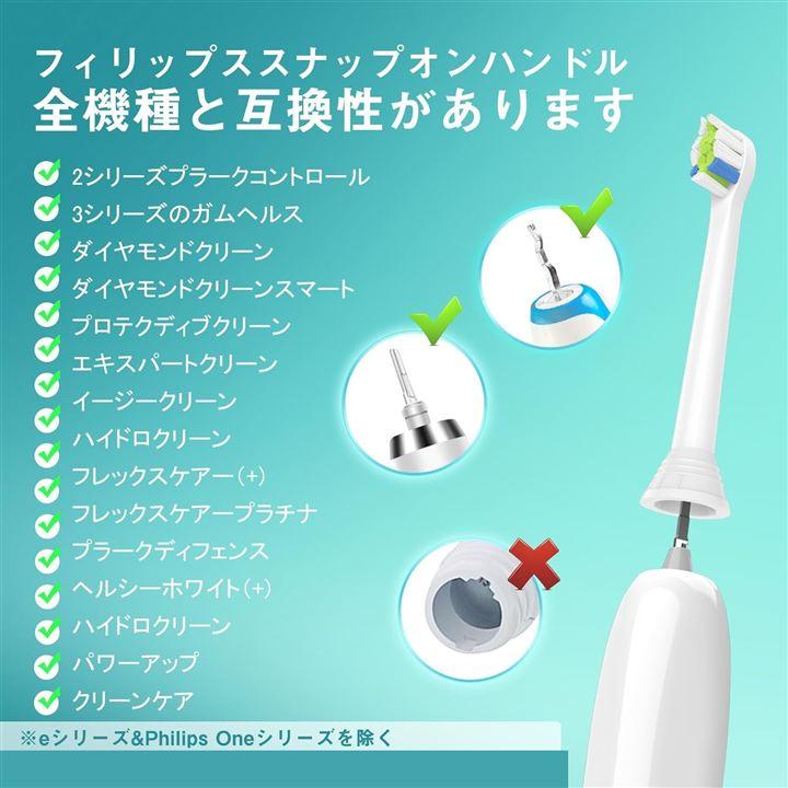 「互換性」Dealswin 電動歯ブラシ替えブラシ は、フィリップス ソニッケアー 対応 モデルとして、ダイヤモンドクリーン、プロテクトクリーン、エキスパートクリーン、イージークリーン、ハイドロクリーン、ヘルシーホワイト、フレックスケアシリーズ、ガムヘルス、プラークコントロール、クリーンケアー、プレミアムクリーンプラークディフェンスプラスなど、ほぼ全てのフィリップス ソニッケアー電動歯ブラシに対応します。