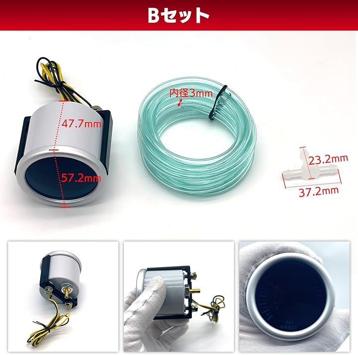 ホースなど必要パーツ付属で、追加メーターとして簡単取り付け可能。