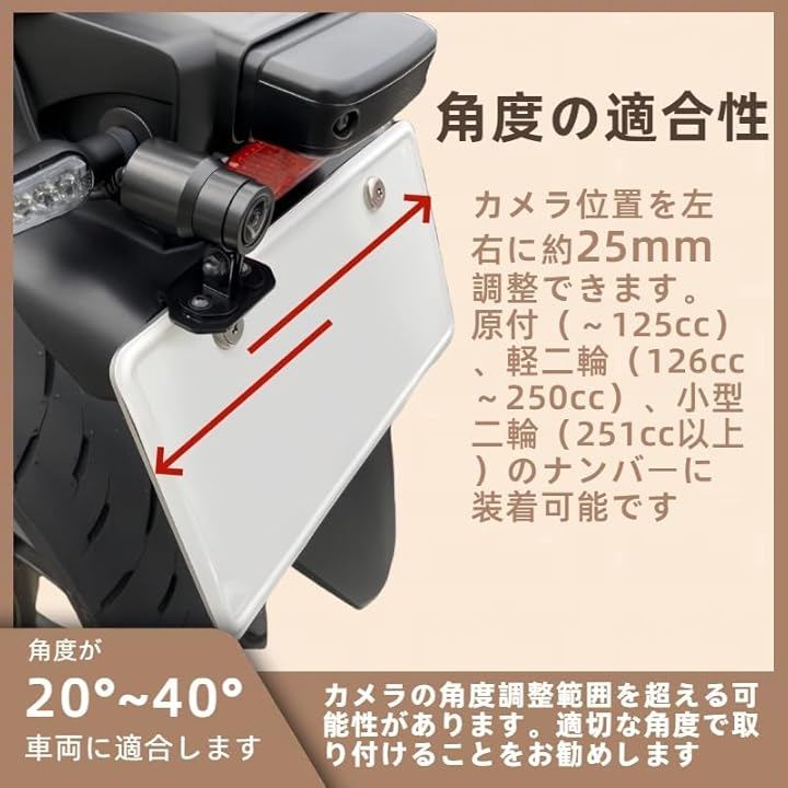 「角度適合性の注意」本製品はナンバープレートの角度が20°~40°の車両に対応します。