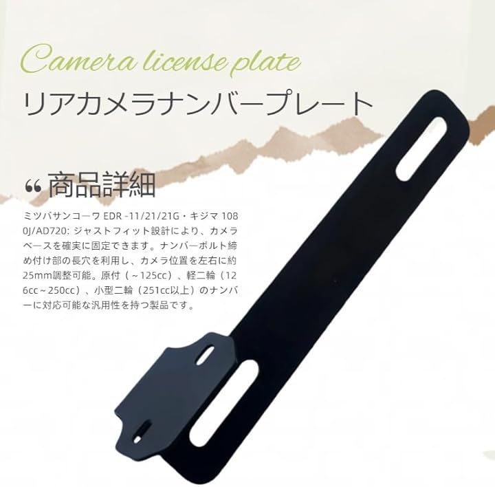 ナンバーボルト締め付け部の長穴を利用し、カメラ位置を左右に約25mm調整可能。