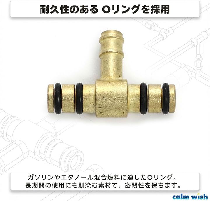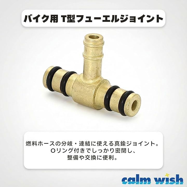 燃料ホースの分岐・連結に使用でき、Oリング付きで燃料漏れを防ぎます。