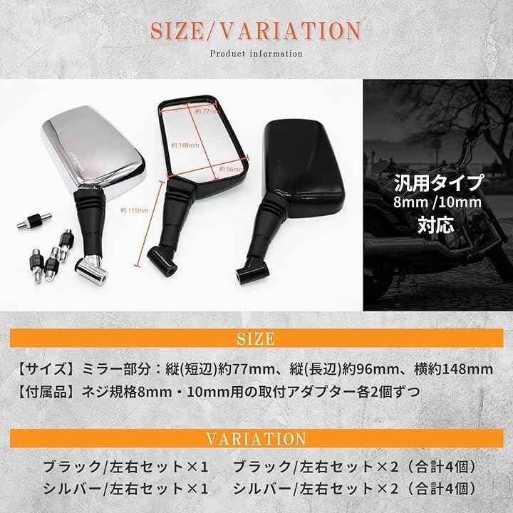 「人気のミラー」汎用 360度 角度調整可能 スクエア型 バイク用ミラー M8/M10対応 正ねじ 左右セット