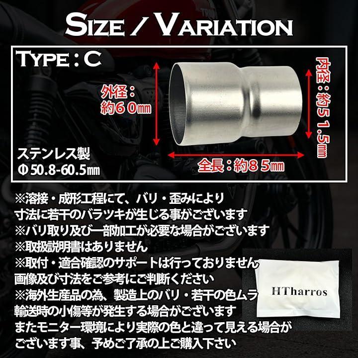 排気管中間パイプ挿入内径約φ60.5mmとφ50.8mm、サイレンサー側差込径約φ50.8mmと60.5mmに対応する物をご用意いたしました。