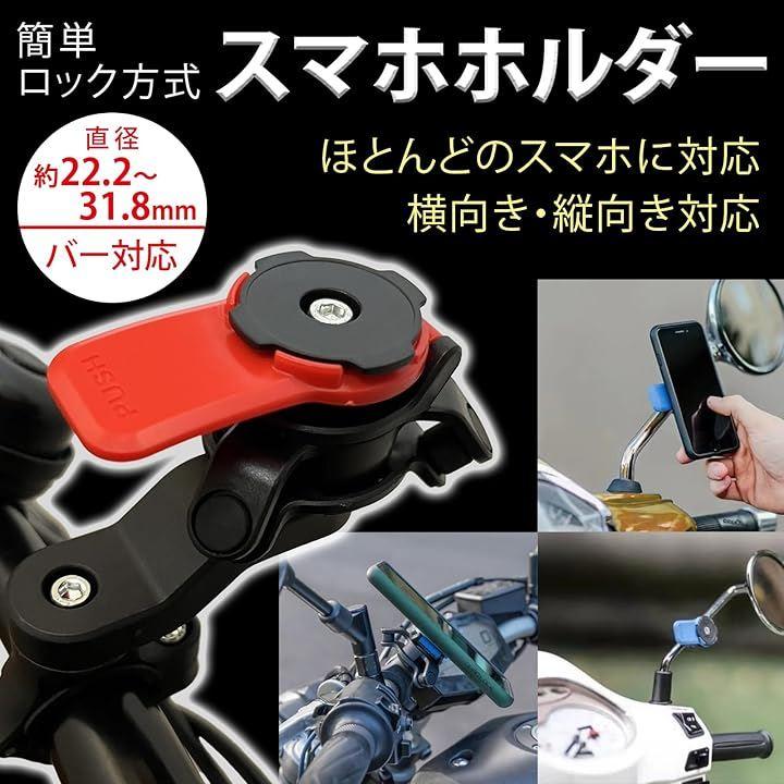 バイク、自転車、原付、スクーターのスマホホルダーや携帯ホルダーとしてはもちろん、対応サイズのマウントやバーなどの取り付けも可能。