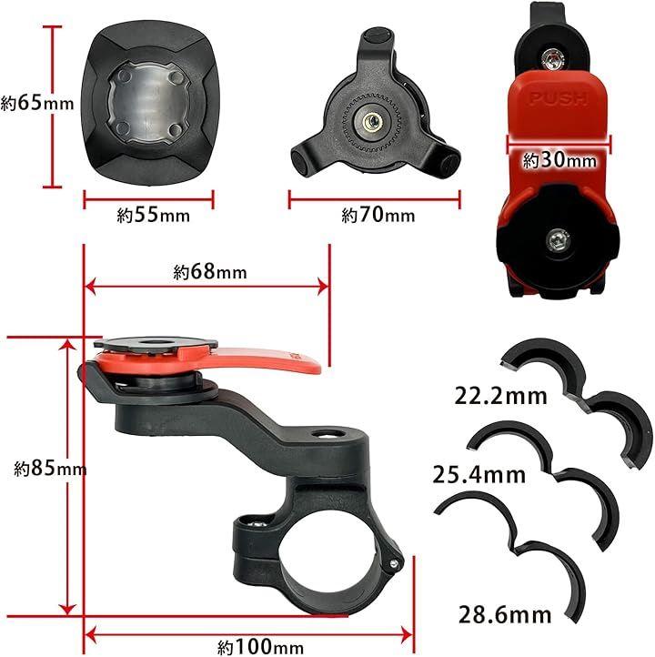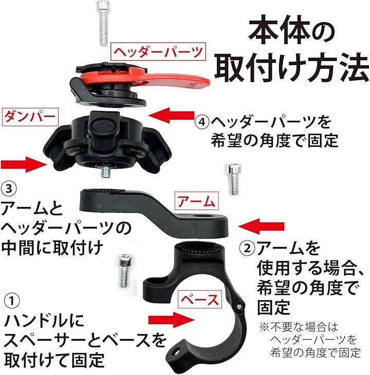 バイク、自転車、原付、スクーターのスマホホルダーや携帯ホルダーとしてはもちろん、対応サイズのマウントやバーなどの取り付けも可能。