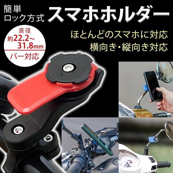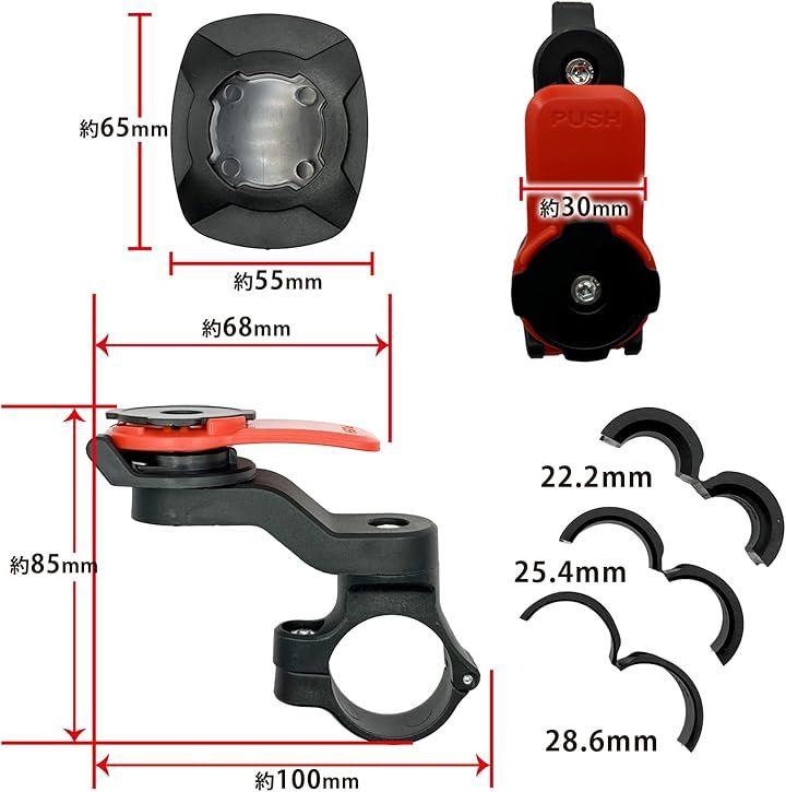 バイク、自転車、原付、スクーターのスマホホルダーや携帯ホルダーとしてはもちろん、対応サイズのマウントやバーなどの取り付けも可能。
