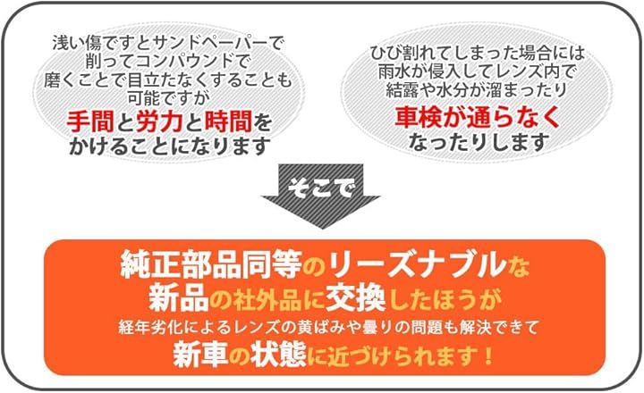 いっそのこと純正部品同等のリーズナブルな新品の社外品に交換したほうが、経年劣化によるレンズの黄ばみや曇りの問題も解決できて新車の状態に近づけることができます。