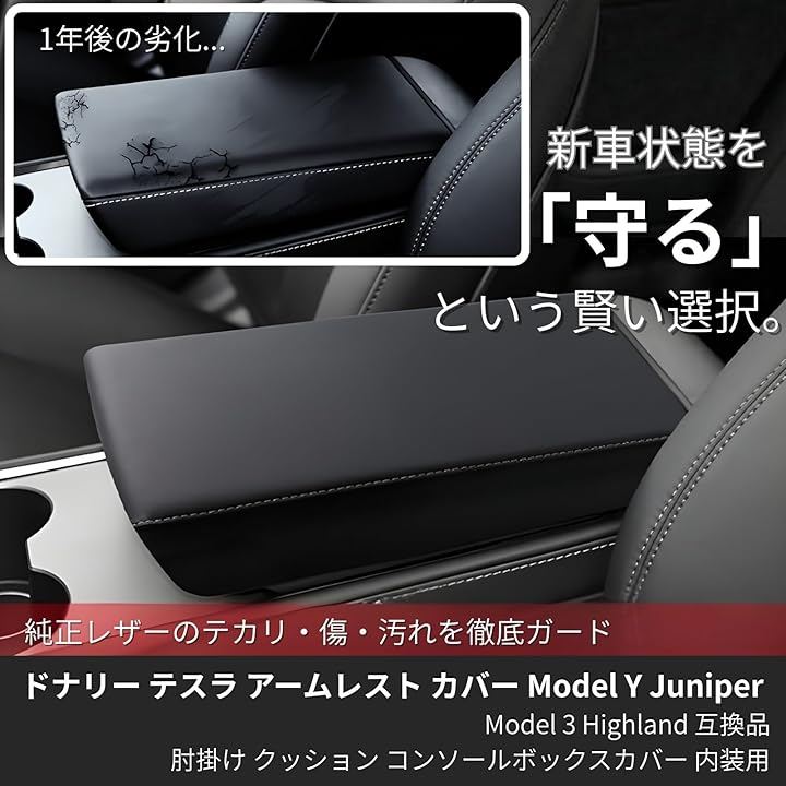 テスラモデル3、テスラモデルYの車内空間に調和するアームレストカバーとして、肘置き・肘掛けとしての使い心地まで整えます。