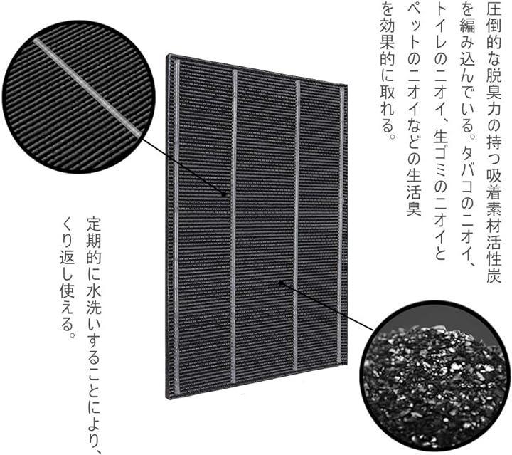 (2)洗える脱臭フィルター:脱臭力の持つ吸着素材活性炭を編み込んでいる。