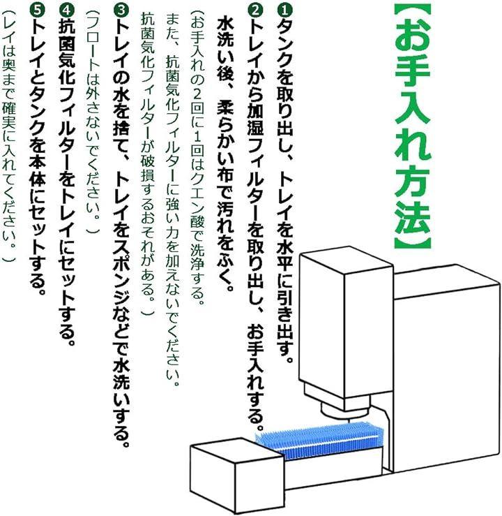 お手入れや交換をせずに使用を続けると、雑菌やカビが繁殖し悪臭が発生したり、加湿量の低下や送風音が大きくなる原因になる。