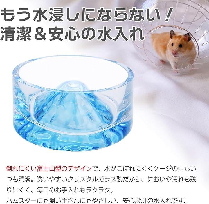 「美しい富士山型クリスタルガラスの水入れ」ハムスター用水入れは透明感のあるクリスタルガラス製で富士山型のデザインが特徴的な小動物向けウォーターボウルです。