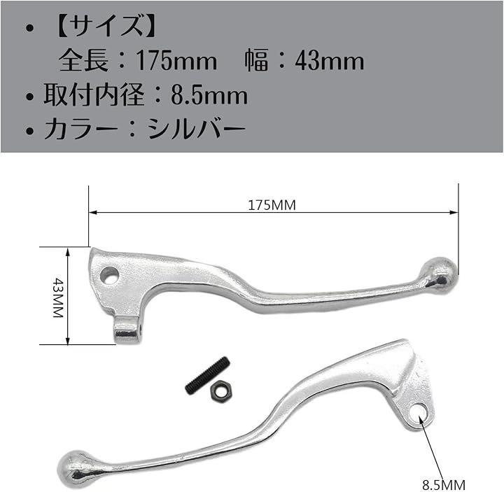 「サイズ」全長:175mm 幅:43mm 取付内径:8.5mm カラー:シルバー