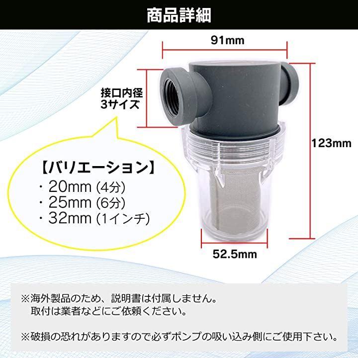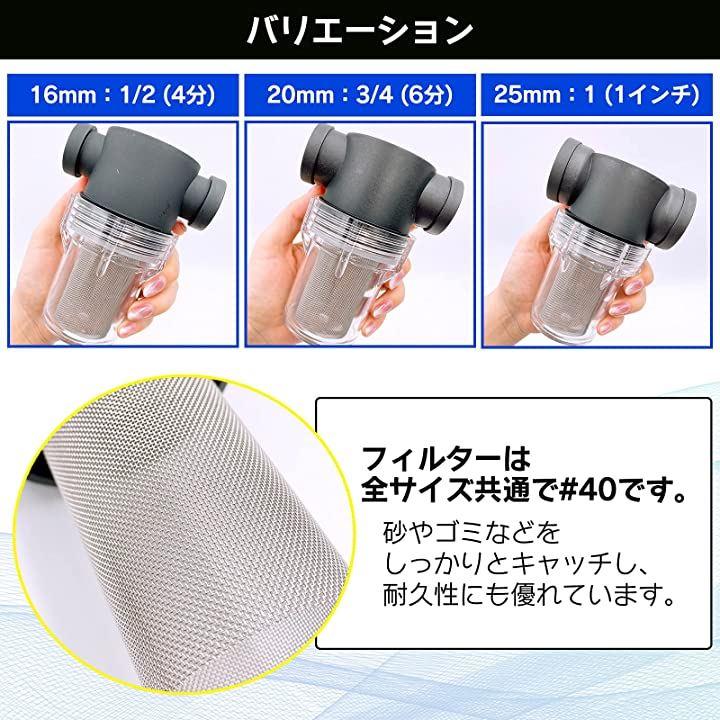 ・「バリエーション」 *16mm 1/2 4分 *20mm 3/4 6分 *25mm 1インチ *フィルターのサイズは標準#40になります。