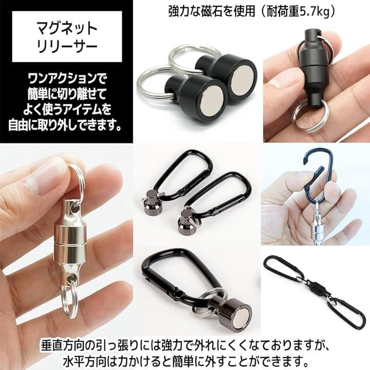 付属のカラビナフックは取り外し可能で、他のコードにもヘッドを付け替えても使用できるので、様々な用途に使えて便利なマグネットリリーサーです。