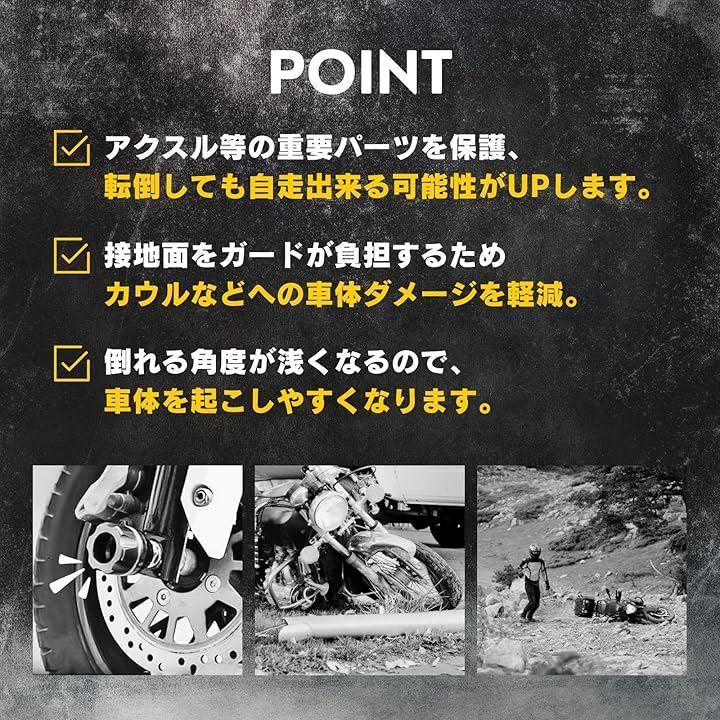 このユニバーサルバイクプロテクションスライダーは、転倒や立ちごけから愛車を守るマストハブアイテムです。