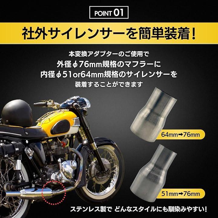 汎用のフランジサイレンサーを購入したもののコネクタ部分のサイズが異なり困っている方にお使いいただけるバイク・オートバイ用品となります。