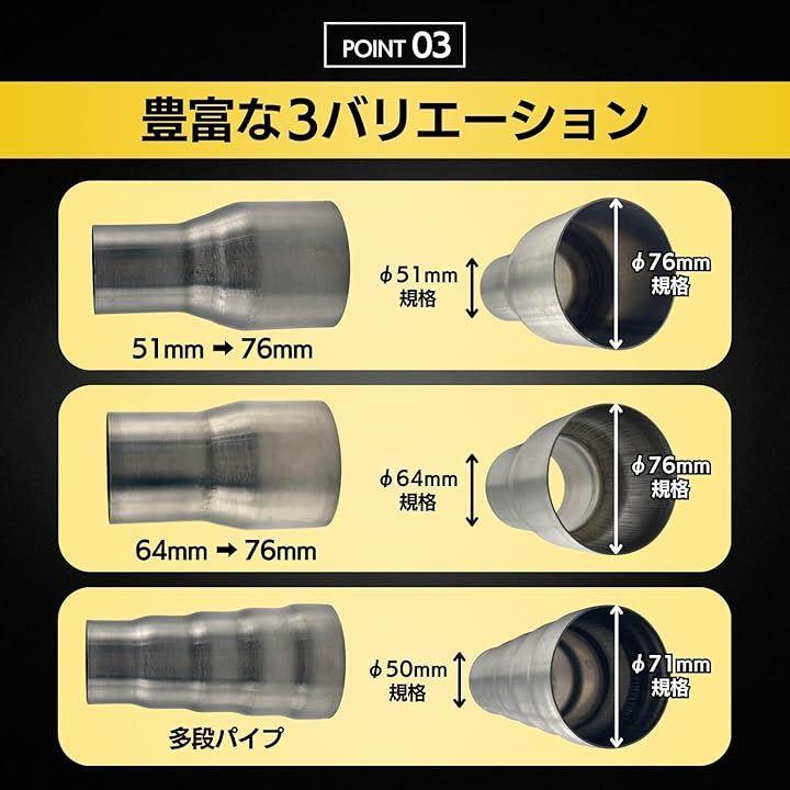 バリエーション:51mmを76mmへ変換、64mmを76mmへ変換、多段 素材:ステンレス製