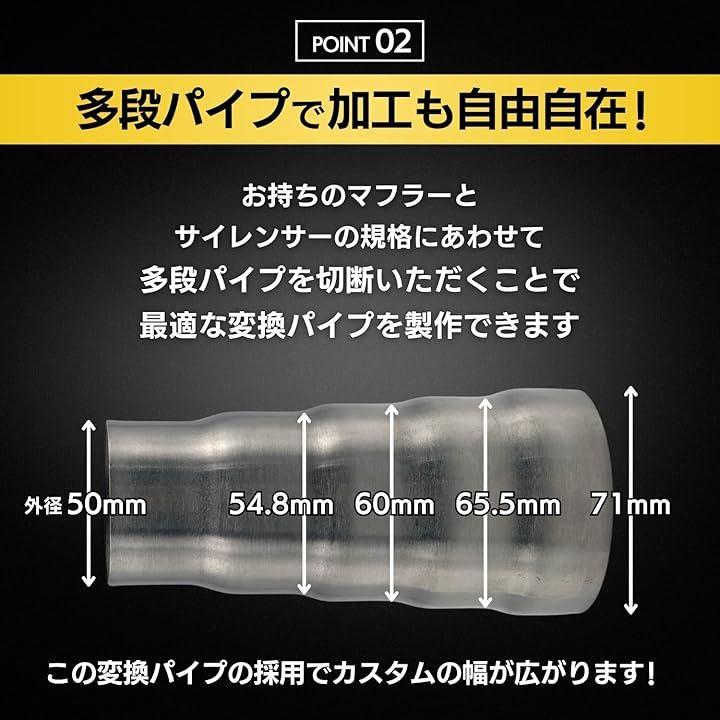 また、多段のパイプもご用意しており、お手持ちのマフラーサイレンサーに応じてご自由に加工が可能です。