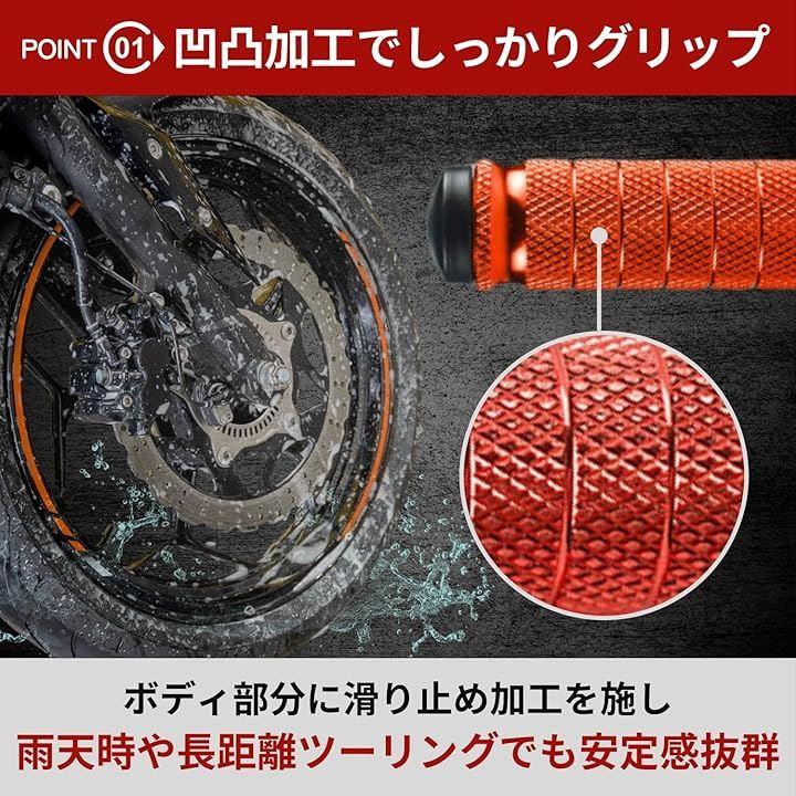 「滑りにくい設計」フットペグ部分には滑り止め加工を施し、雨天時や長距離ツーリングでも安定感抜群。