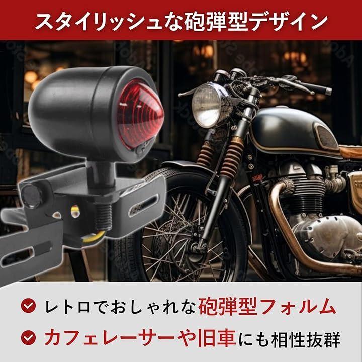 「スタイリッシュな砲弾型デザイン」 レトロでおしゃれな砲弾型フォルムは、カフェレーサーや旧車カスタムにも相性抜群。