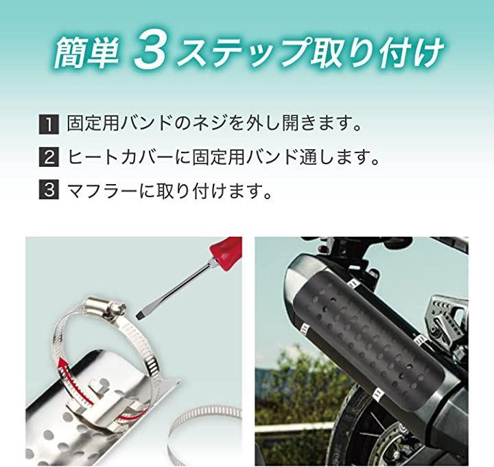 排熱で熱くなったマフラーやエキゾーストパイプをカバーし、火傷や衣類の焦げを防止します。