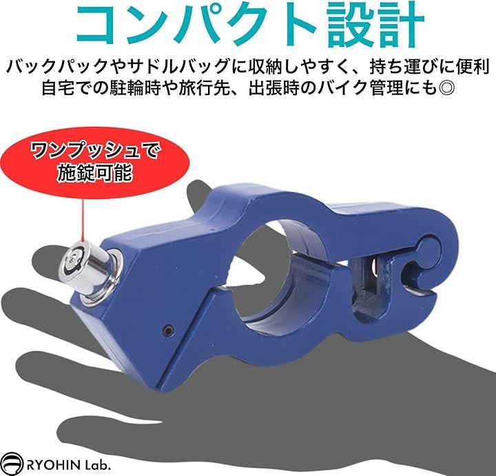 「商品内容」パッケージ内容:本体x1個・専用鍵x2個、本体サイズ(約):長さ135mmx高さ60mmx幅12mm、グリップ径 27~38mm・レバー径 18~20mm に適合、材質:アルミ合金