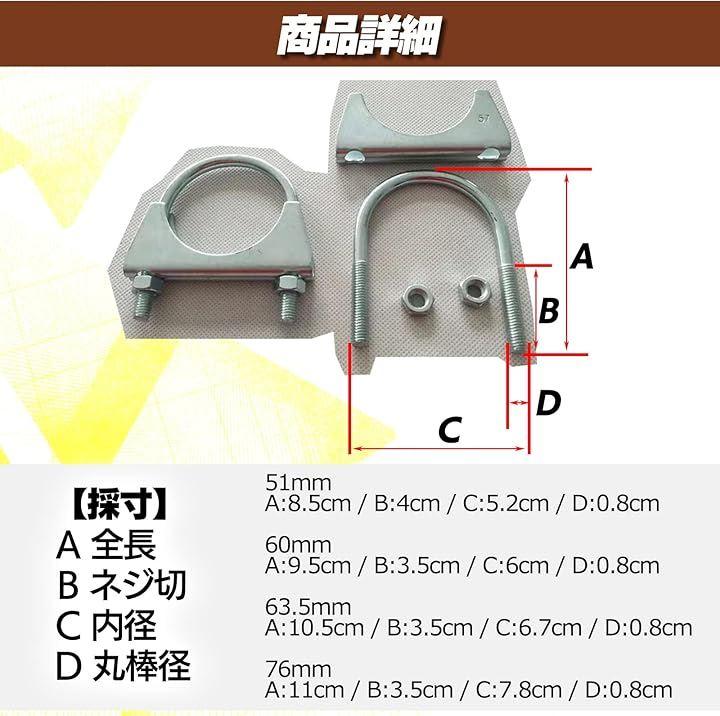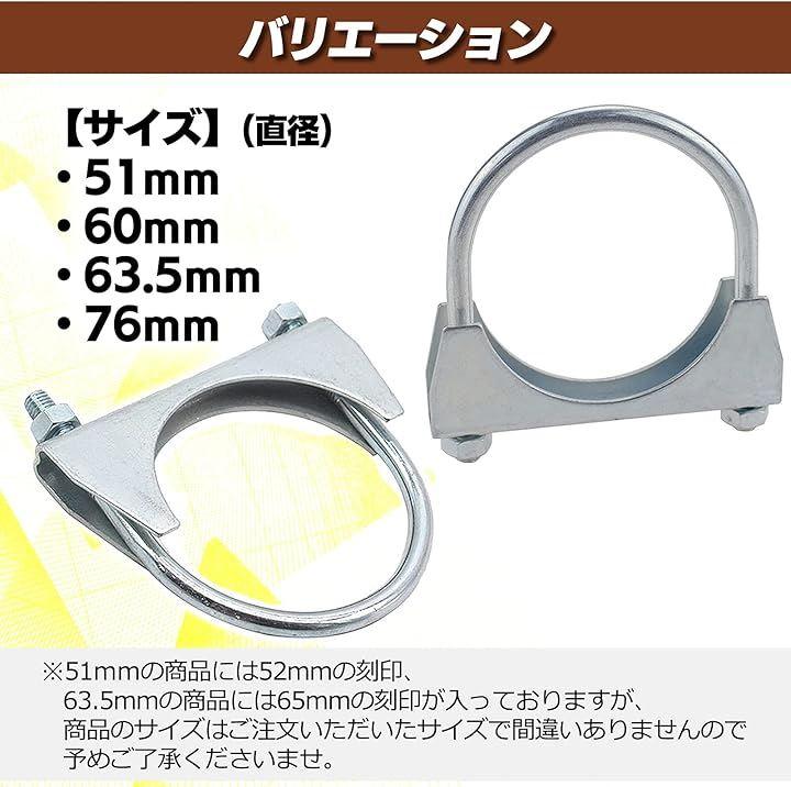 サイズは直径51mm、60mm、63.5mm、76mmの4種類があり、マフラーバンドの代替品としても利用可能です。