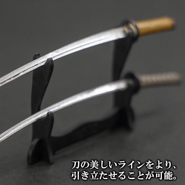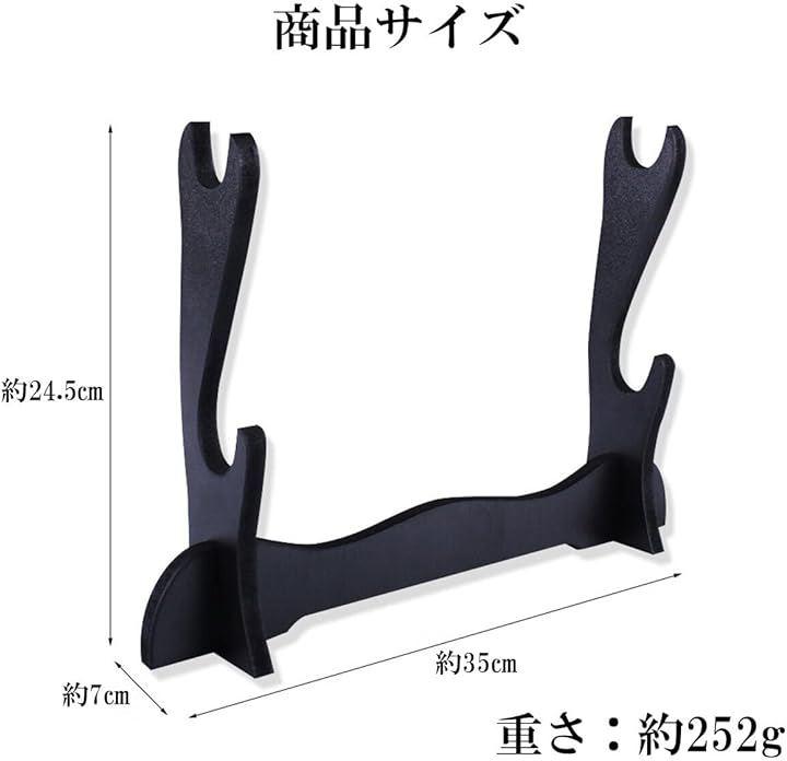 刀剣コレクター必須アイテム。シンプルでかっこいい二本掛け用の黒塗り刀掛け台です。
