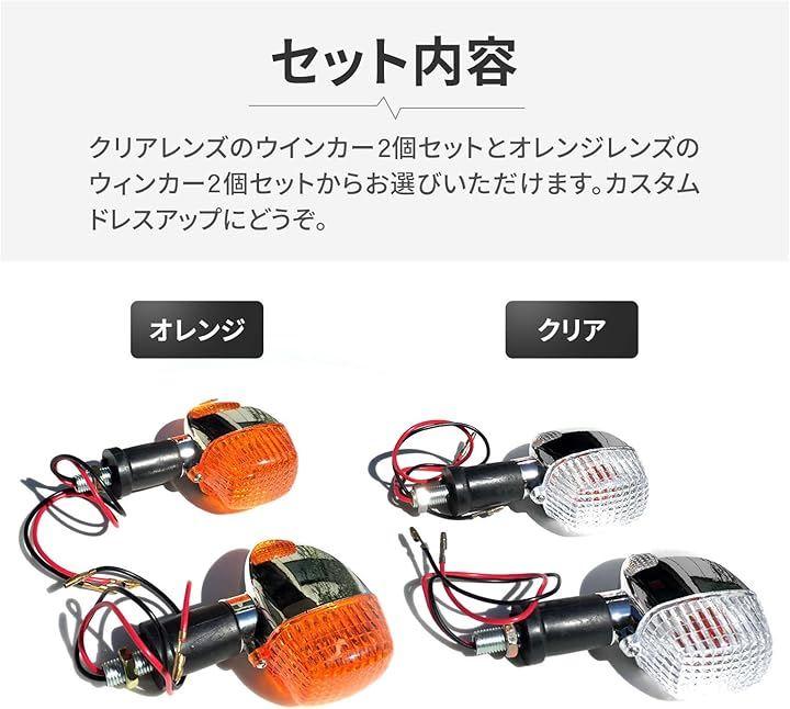 セット内容:クリアレンズのウインカー 2個セットとオレンジレンズのウィンカー 2個セットからお選びいただけます。