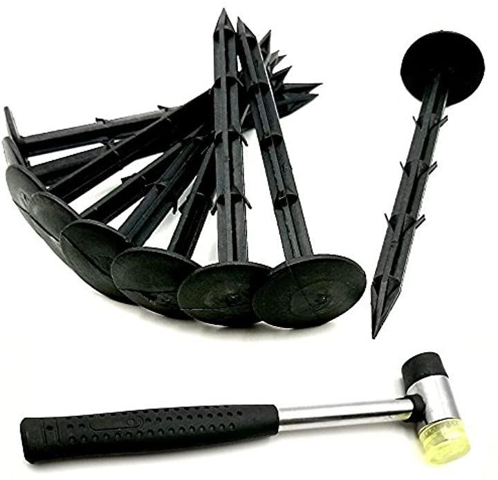 sactaske防草シート固定ピンPP杭100本&ハンマー菜園園芸セット(黒16cm)