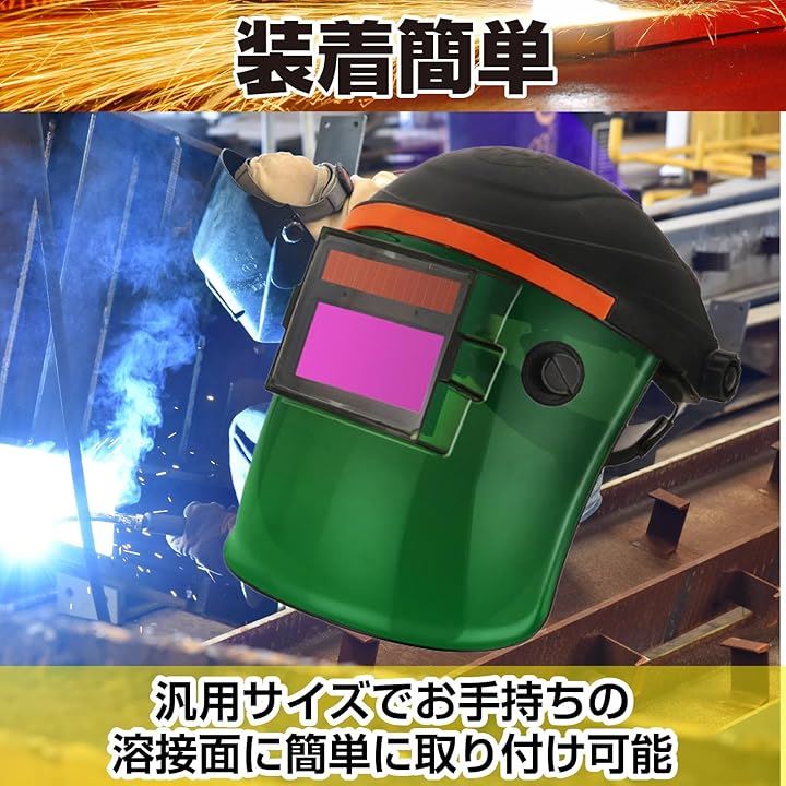 「取付簡単」自動遮光溶接面に対応しており、汎用サイズのため簡単に取り付け可能です。