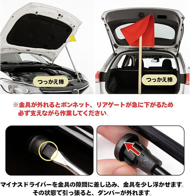 「交換の目安」 リアゲートの開閉に違和感を感じる、ゲートが勝手に下がる、開けるときに重く感じる場合はダンパー劣化のサインです。
