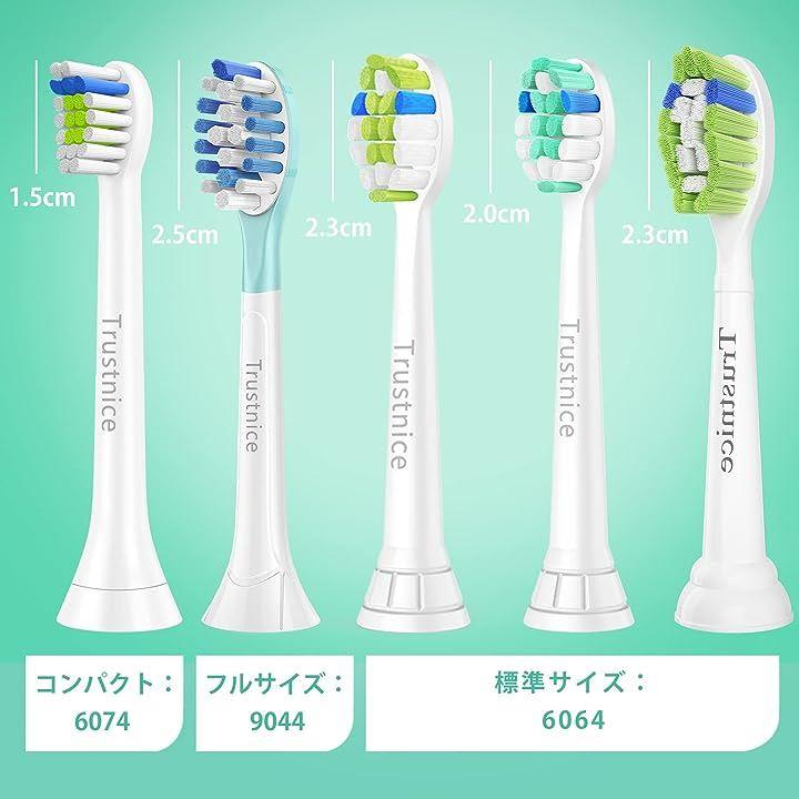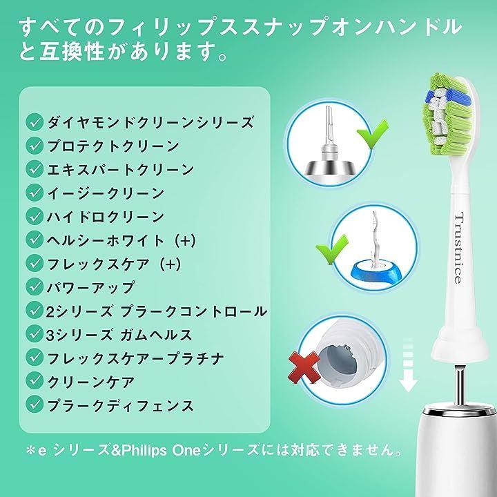 Trustnice 替えブラシはダイヤモンドクリーン、プロテクトクリーン、イージークリーン、フレックスケアー、ガムヘルス、ヘルシーホワイト、ホワイトニング、プレミアムクリーン、クリーンプラス、センシティブ、プラークディフェンス、クリーンケアなど全てのフィリップス ソニッケアー 電動歯ブラシでお使いいただけます