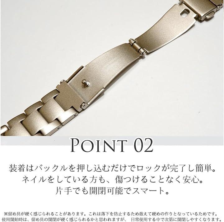 「高級感溢れるバンドで華やかに」動くたびにブレスレットが輝き、重厚感と光沢により高級感を演出しています。
